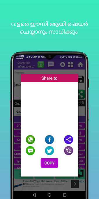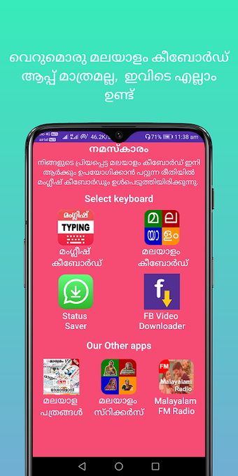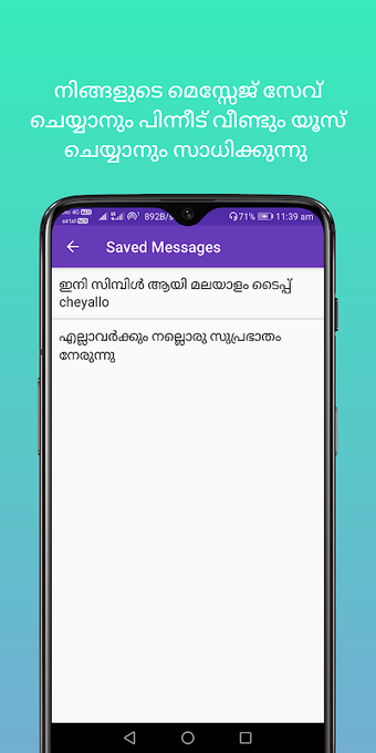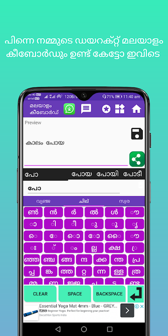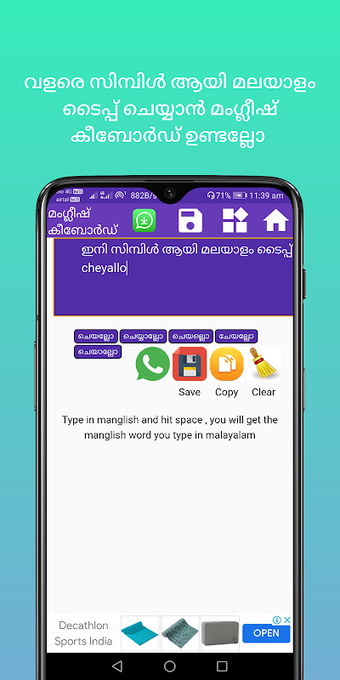 マラヤーラム語キーボードは、より速く入力できるキーパッドです。組み込みの辞書と、独自の辞書を設定する機能が付属しています。英語で入力すると、マラヤーラム語で翻訳されます。さまざまなチャット アプリケーションで使用できます。